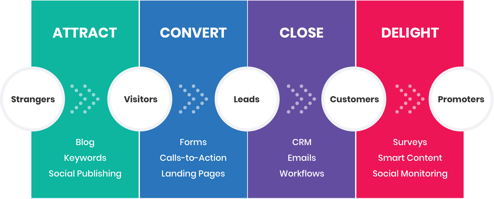 Unlike content marketing that is solely focused on creating and distributing content, the inbound structure follows a step-by-step process to attract, engage, and delight customers. For this purpose, it utilizes a number of techniques including search engine optimization, e-mail marketing, and pay-per-click (PPC).